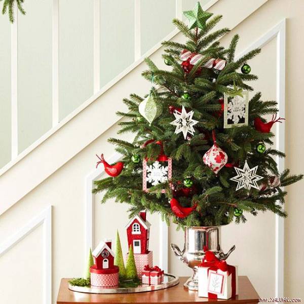 Nhà chật không thể cho phép mua và trang trí cây thông Noel to và hoành tráng được. Để thay thế, có thể sắm những cây thông Noel mini hoặc cây thông Noel giả, đặt ở góc phòng hoặc góc cầu thang.